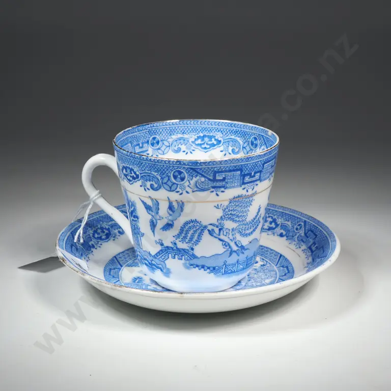 Vintage Phoenix China Blue & White Willow Pattern Cup & Saucer