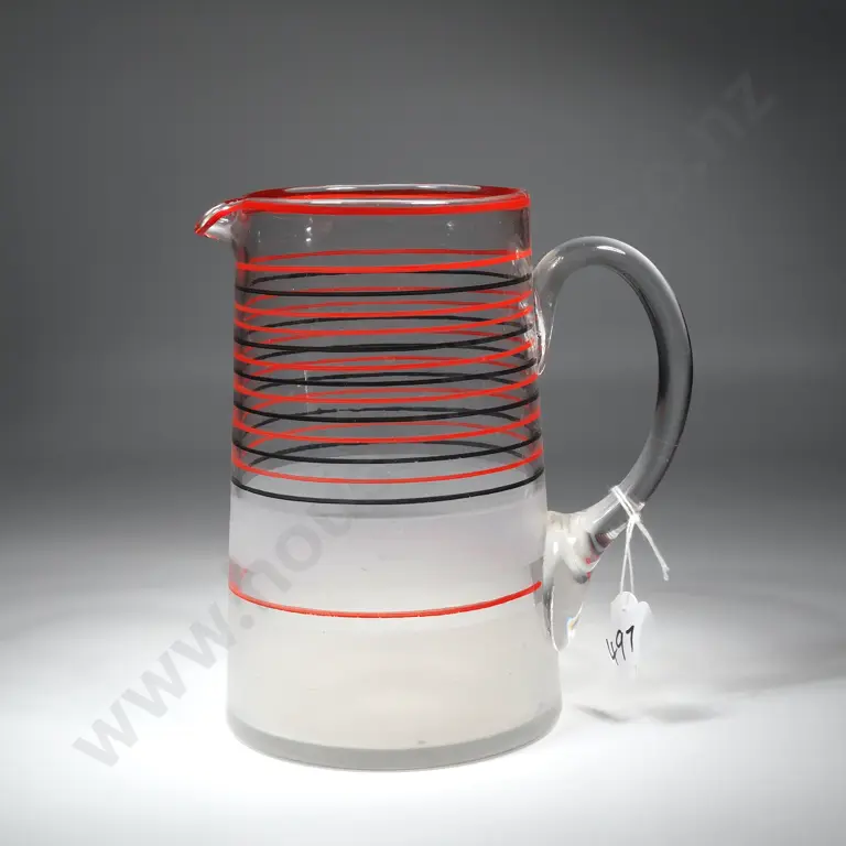 Early Victorian Pewter Quart Jug w Spout & C-Scroll Handle