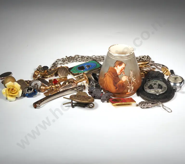 Vintage Oval & Circular Leather Boxes w Arctus Elite Watch & a 10 Franc Pendant on Gold Tone Ball Chain