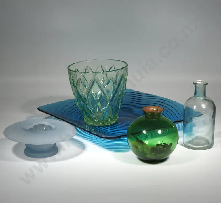 A Capodimonte Floral Ornament, Small Limoges Plate w Cobalt Blue/Gilt Border & a Small Facetted Glass Trinket Box
