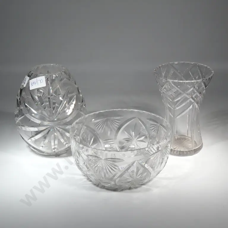 Crystal Bowl & A Vintage Ribbed Swung Glass Vase