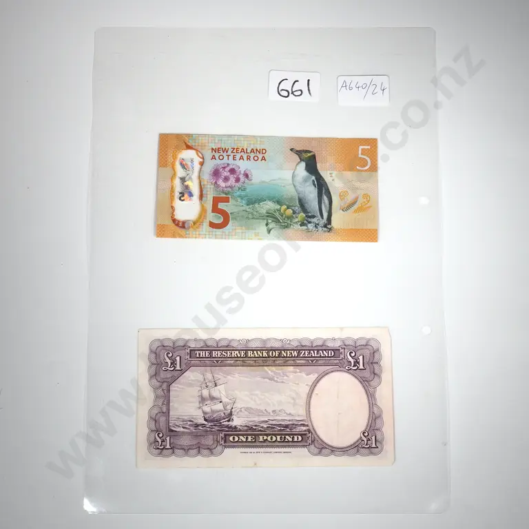 New Zealand 10 Shilling, One & Five Pound Banknotes - Laminated