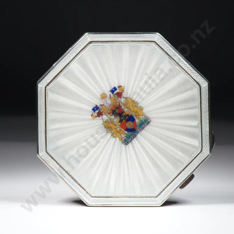 Exquisite Cased Sterling Silver Engine Turned Enamel Presentation Folding Compact Estimate: $600 - $800
