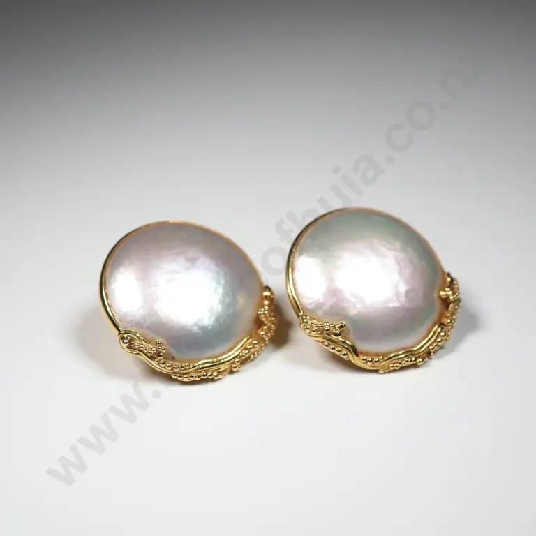 Stylish 18ct Gold Mabe Pearl Earrings Estimate: $1,200 - $1,500