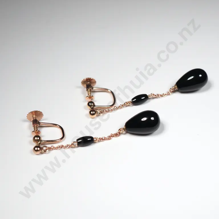 Stunning 9ct Rose Gold Onyx Earrings