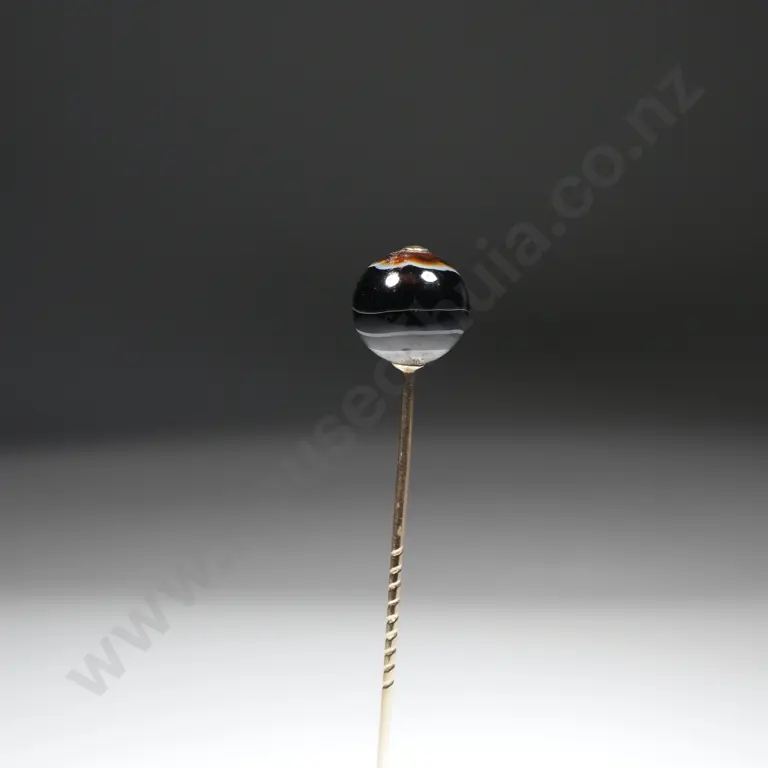 Impressive Antique Rolled Gold & Onyx Tie Pin