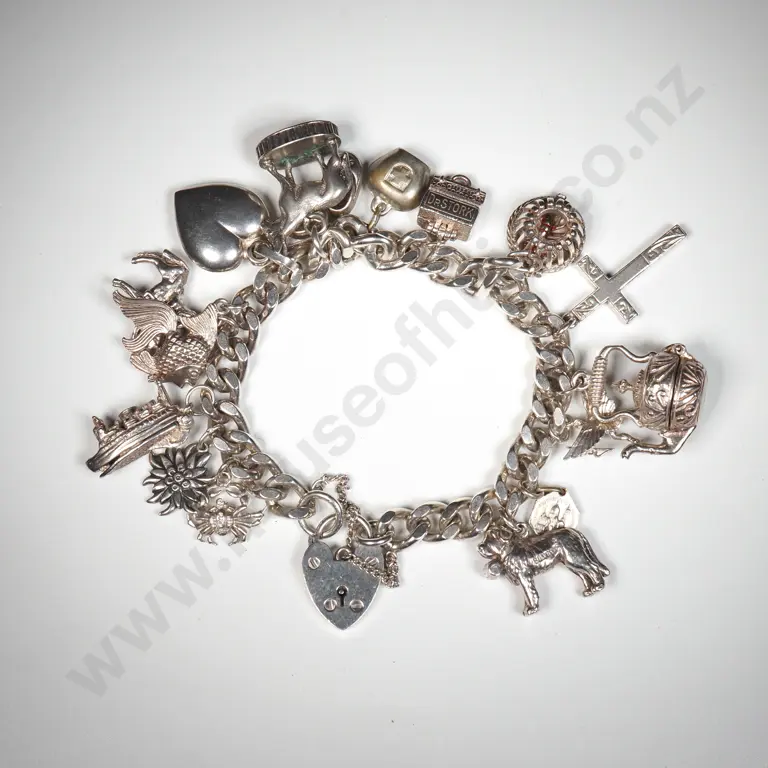 Sterling Silver Charm Bracelet w 16 Charms Estimate: $300 - $500