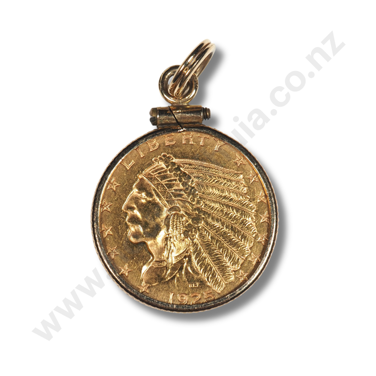 1925 United States of America Liberty Gold 2/12 Gold Coin in Rolled Gold Mount Estimate: $750 - $1,000