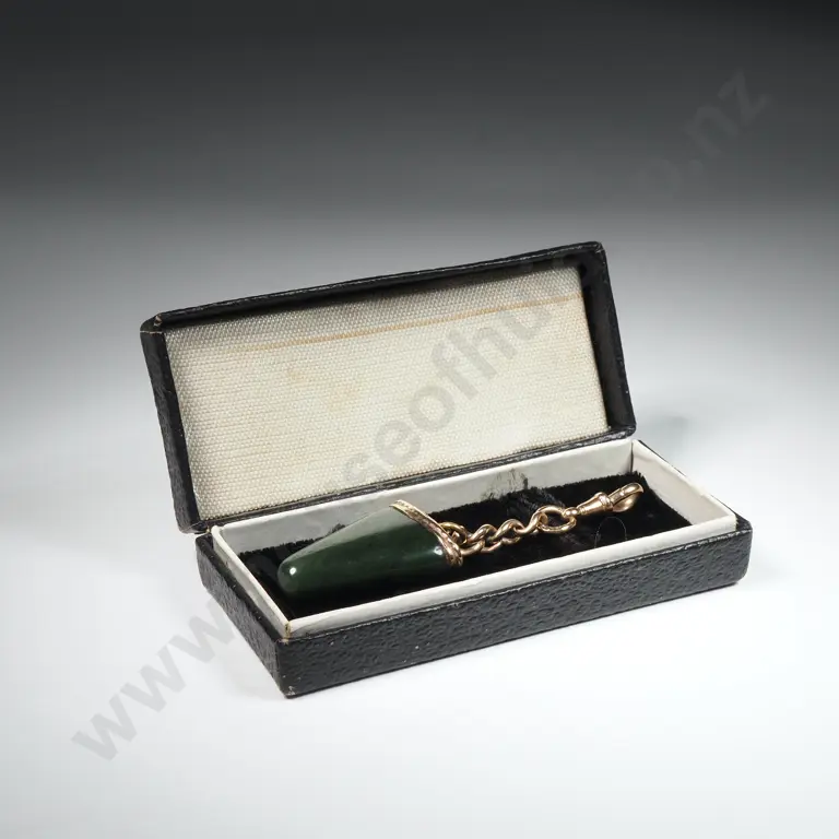 Colonial New Zealand Greenstone Tooth Pendant w 9ct Gold Cap & Chain / Dog Clasp Estimate: $400 - $600