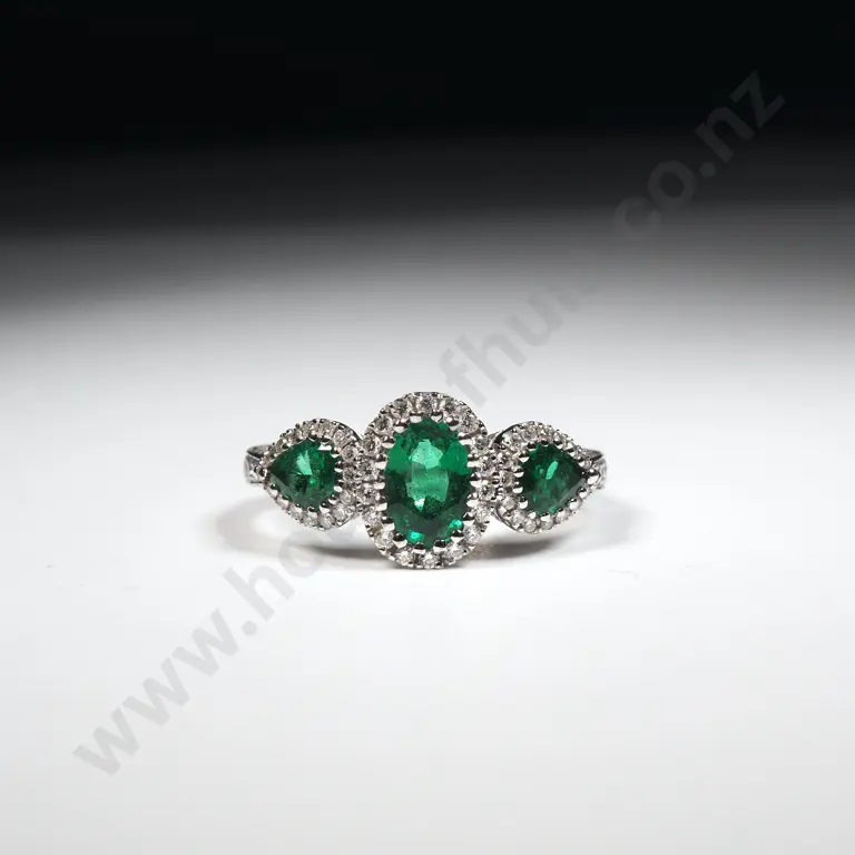 18ct White Gold, Emerald & Diamond Ring from Partridges Estimate: $1,200 - $1,800