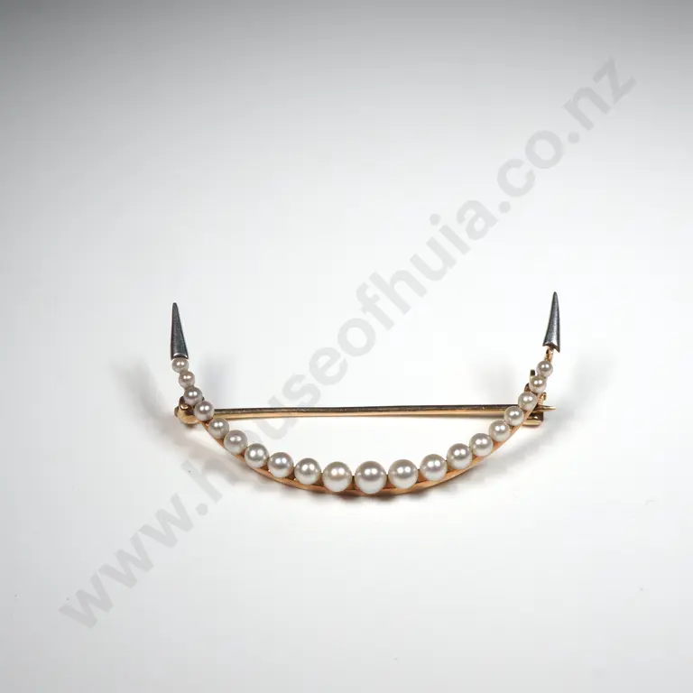 14ct Gold Pearl Crescent Brooch Estimate: $250 - $350