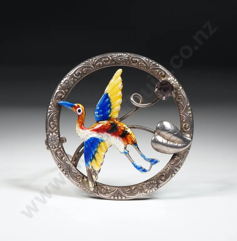 Sterling Silver Thai Green Enamelled Brooch A/F