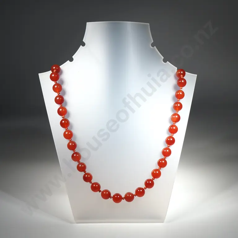 Vintage Red Stone Bead Necklace on Sterling Silver Clasp