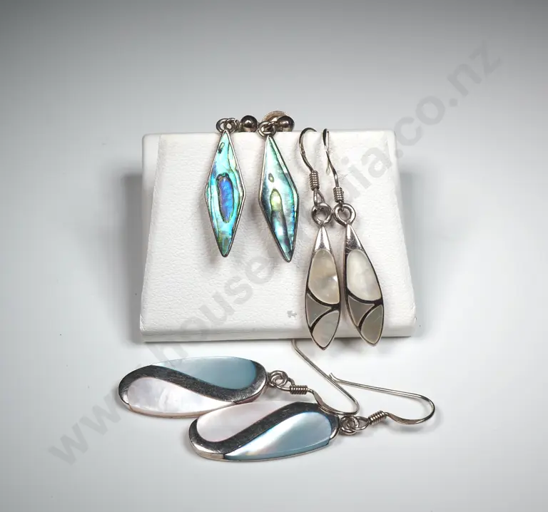 Sterling Silver Rectangular Paua Shell Pendant & Square Earrings