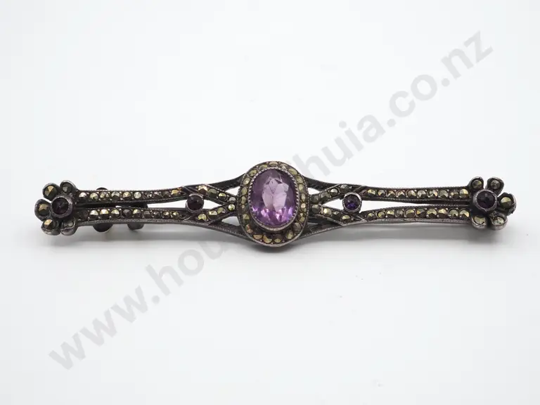Vintage Sterling Silver Amethyst & Marcasite Brooch Estimate: $80 - $100