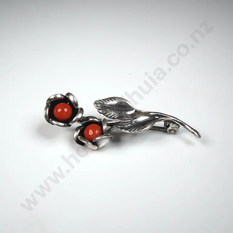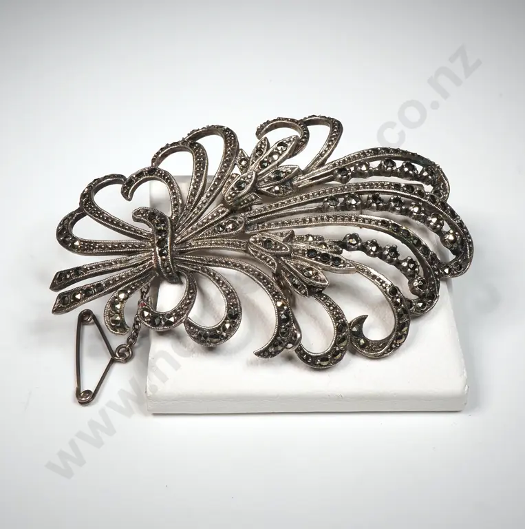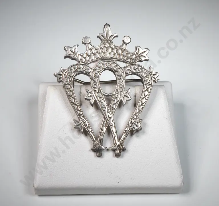 Sterling Silver Thai Green Enamelled Brooch A/F