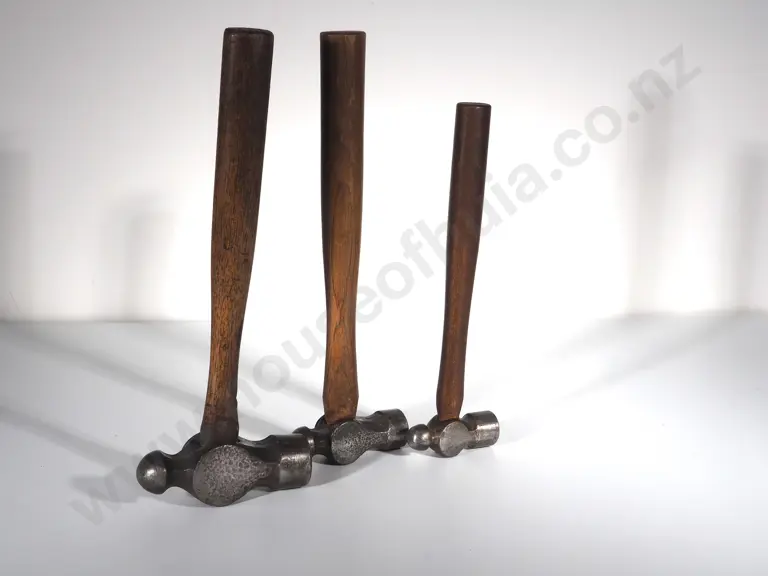 Antique Set of Three Ball & Pane Hammers w Hickory Handles Estimate: $120 - $180