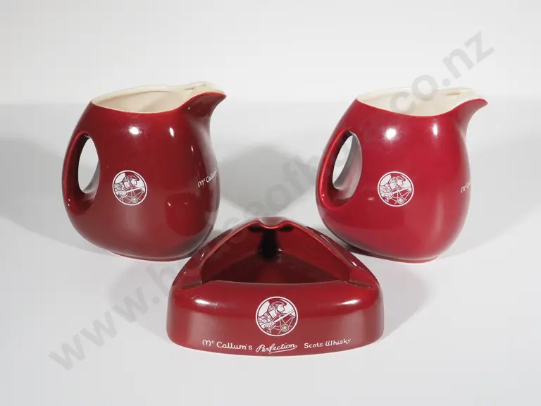 McCallam's Red Ash Tray & Two Water Pourers (for Whiskey) Estimate: $60 - $80