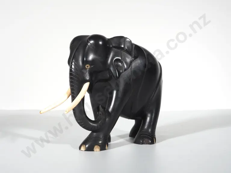 Antique Ebony Elephant w Bone Tusks Estimate: $60 - $80