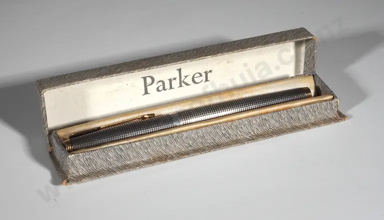 Boxed Sterling Silver Parker Cicele Fountain Pen w 18ct Gold Nib: Made in the U.S.A Estimate: $150 - $250