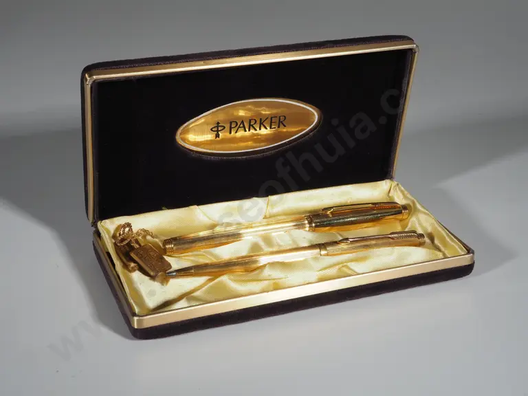 Boxed Gold Plated Parker Fountain Pen w 14ct Gold Nib & Pencil Estimate: $140 - $180