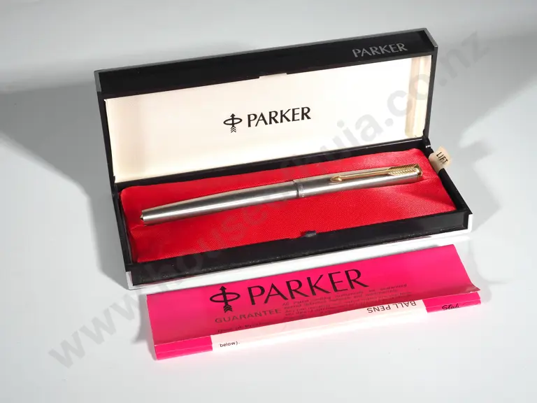 Boxed Brushed Stainless Parkler Fountain Pen: Made in England w Alternate Cartridge Estimate: $120 - $160
