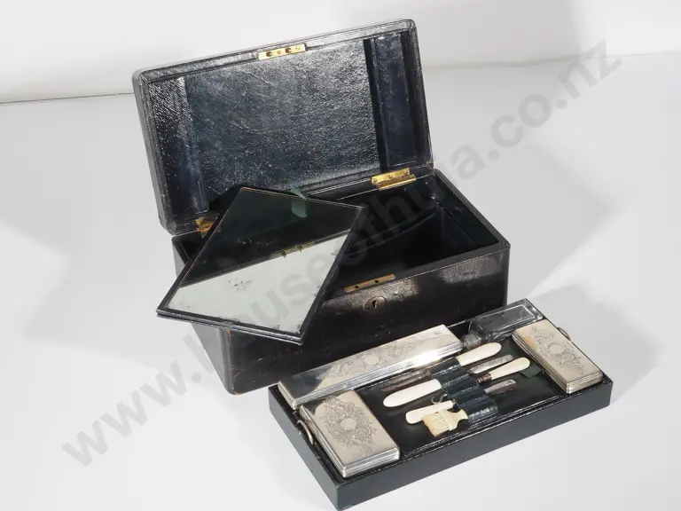 Gentlemans Dressing Case, Sterling Silver Mounted Boxes: Hallmarked 1844 Francis Douglas Estimate: $300 - $500