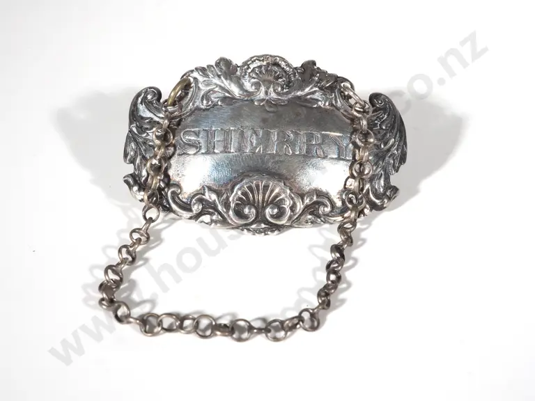 Sterling Silver Hallmarked Sherry Decanter Label Estimate: $80 - $120