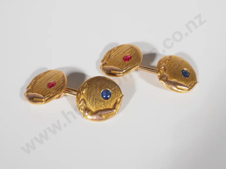 Exceptional 14ct Classic American Cufflinks w Rubies & Saphires: Feminine Silhouettes! Estimate: $1,500 - $1,800