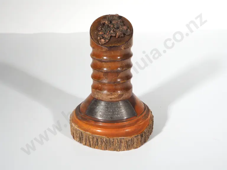 1947 Gold Ore Sample from the Mount Morgan Gold Mine Australia: Displayed on Wooden Stand w Silver Plaque Estimate: $600 - $800