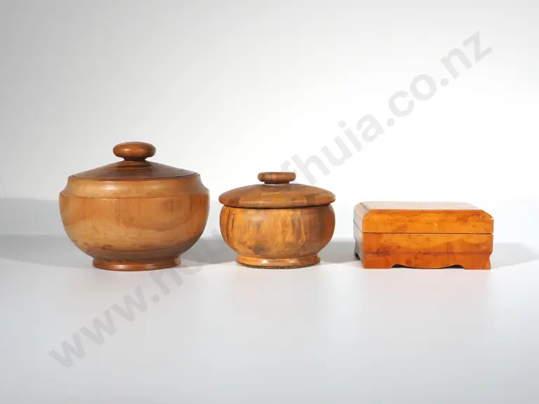 Three Vintage Wooden Bowls w Lids Estimate: $40 - $80