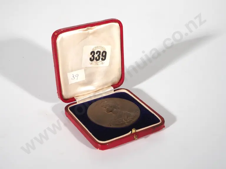 Large Cased 1911 Coronation Medallion in Bronze: George V & Mary Estimate: $120 - $180