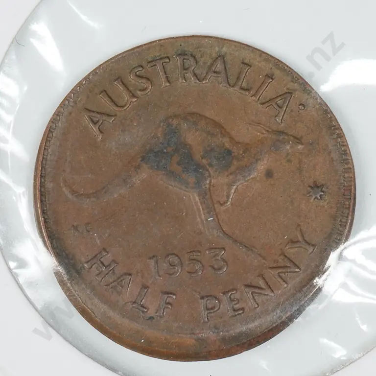 1953 Australian Half Penny Out of Collar Strike