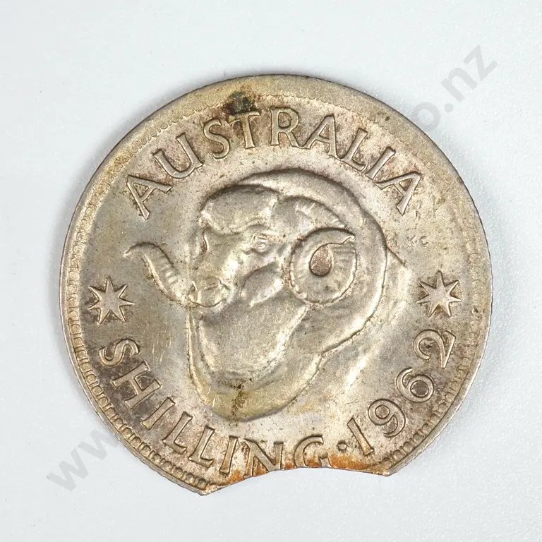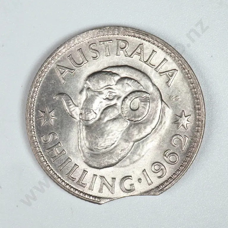 1962 Australian Shilling - Large Clipped Planchet