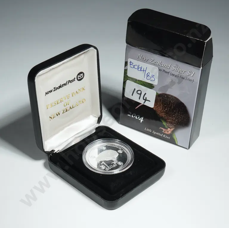 2004 New Zealand One Ounce Silver Coin - Little Spotted Kiwi - CV $375