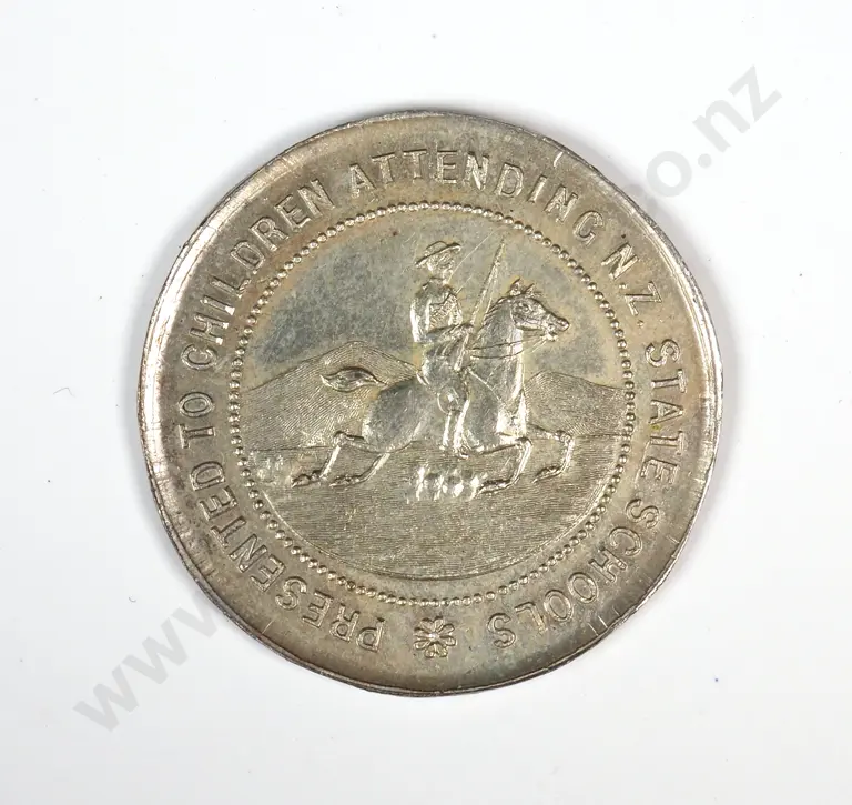 Bronze medal struck for the New Zealand Centennial in 1940. 38mm. It is listed in the Medallic Commemoratives of New Zealand 1865-1940 by Leon Morel as number 1940/2 and has a rarity rating of R6 very rare ( estimated 4 to 10 known ) but listed only in silver. Please note that this is the very rare prize medal, awarded