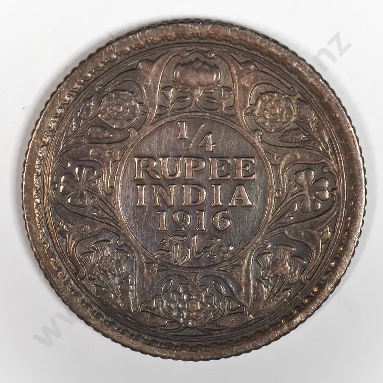 India 1918 Quarter Rupee, Extremely Fine