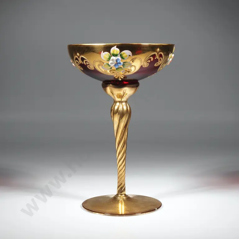 Murano Glass Goblet w Ruby Glass Bowl on Spiral Stem