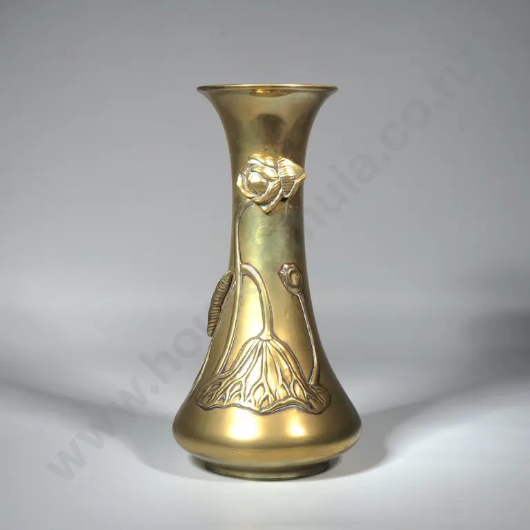 Japanese Brass Vase w Embossed Floral Design