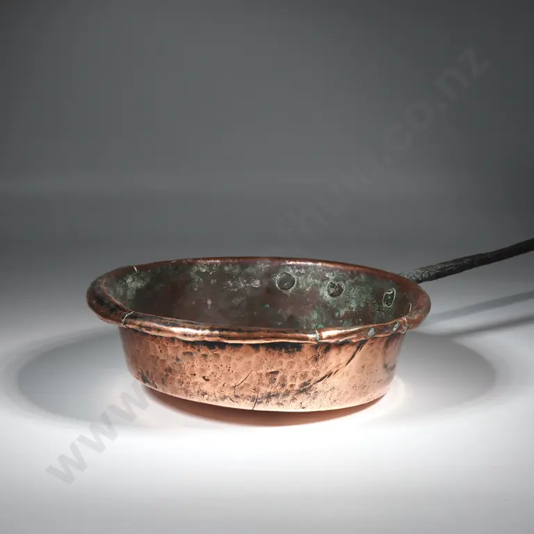 19th French Copper Saute Pan w Long Cast Iron Handle
