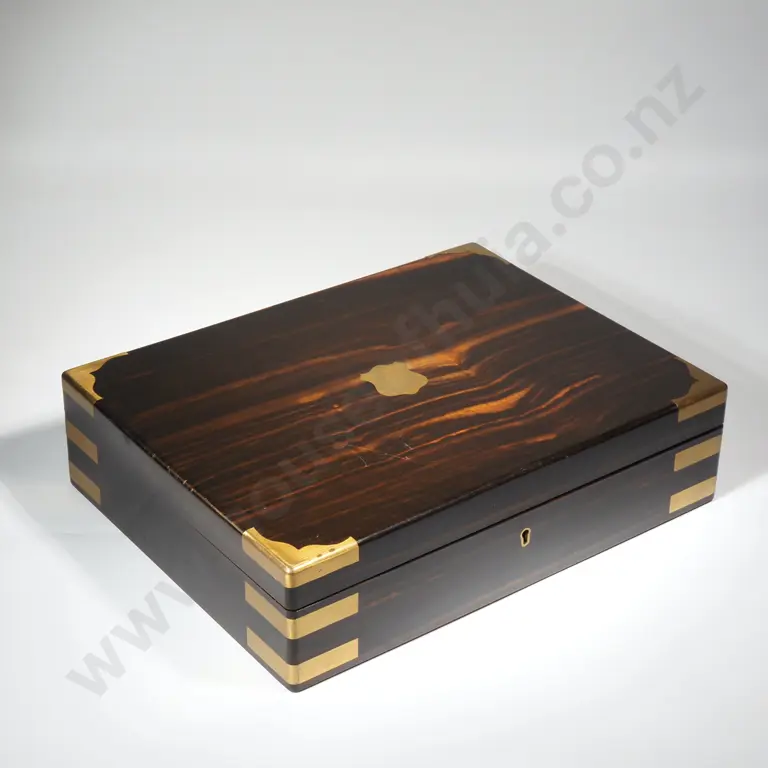 Antique Wood Box w Brass Mounts & Cartouche