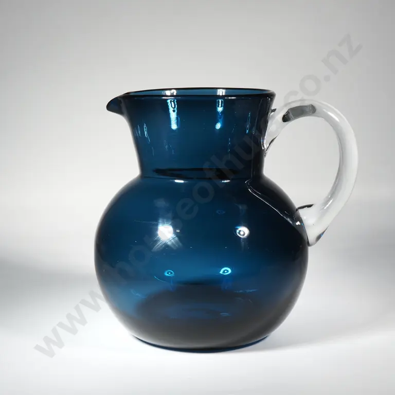 Cobalt Blue Glass Pitcher w Clear Glass Handles