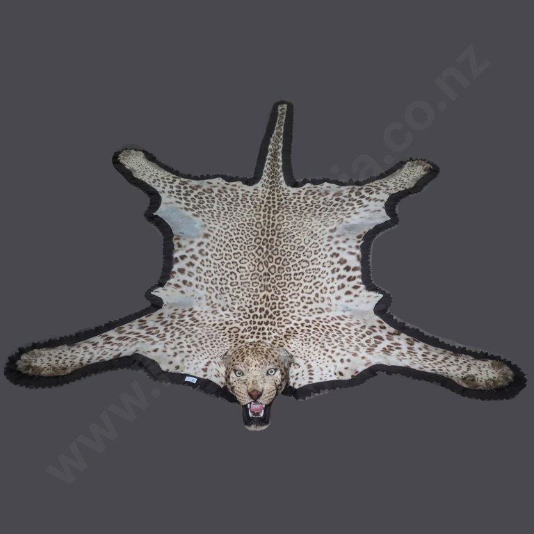Vintage Taxidermy Leopard Skin Rug Featuring A Mounted Head w Glass Eyes