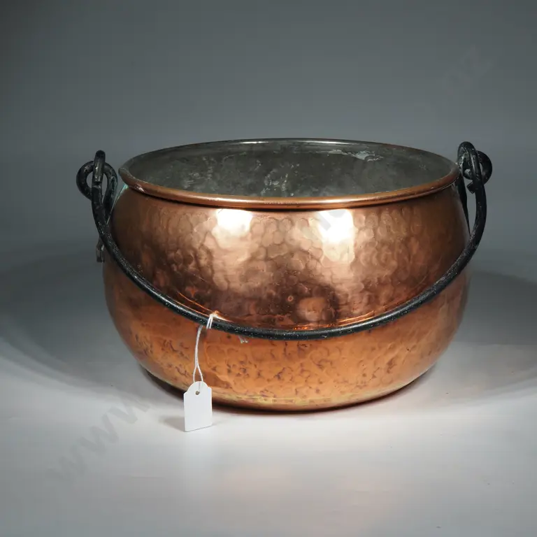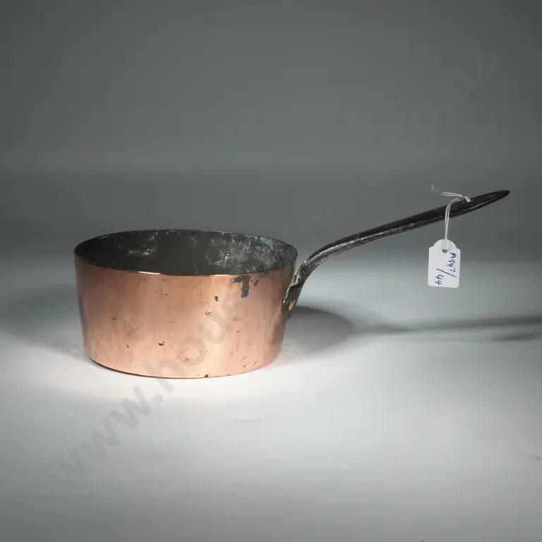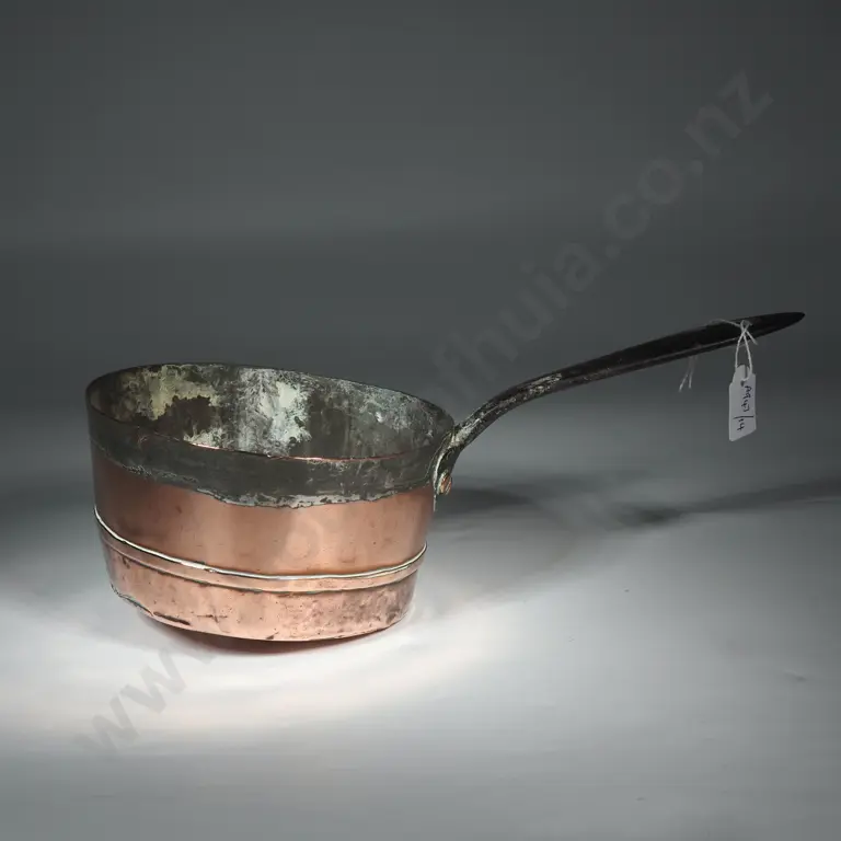 19th French Copper Saute Pan w Long Cast Iron Handle
