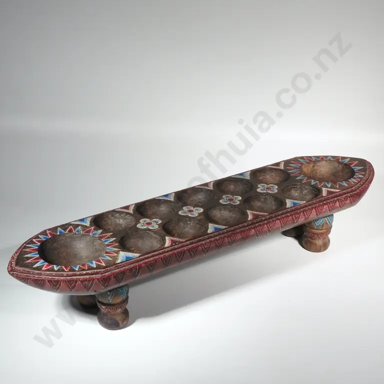 Congkak Board Game w Two Rows of Five Holes & Two Large Holes to each End