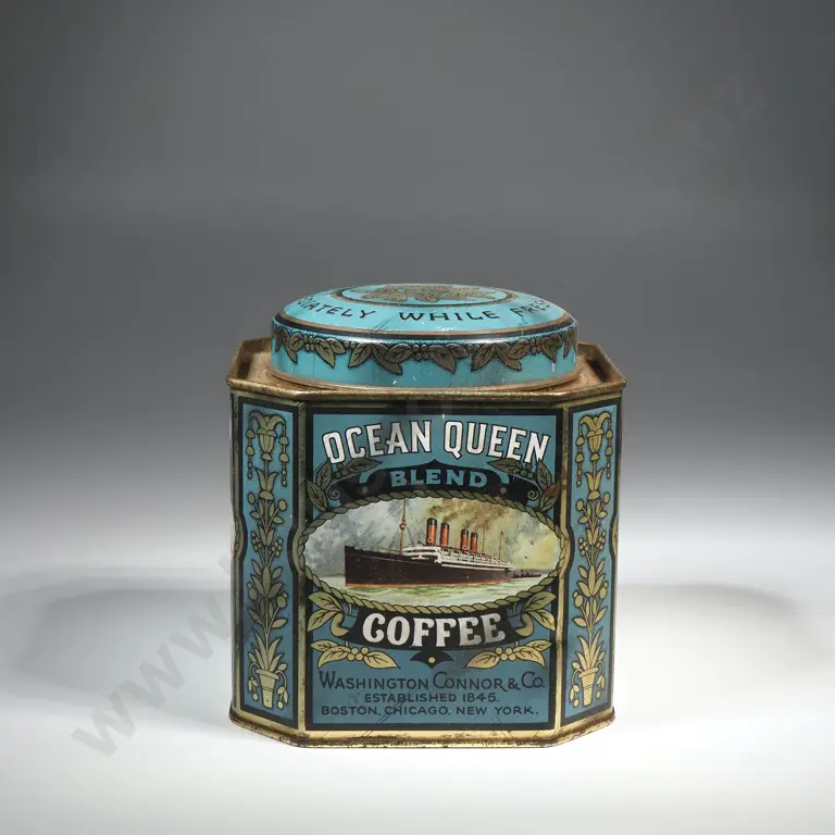 Vintage Ocean Queen Blend Coffee Tin Blended by Washington Connor & Co
