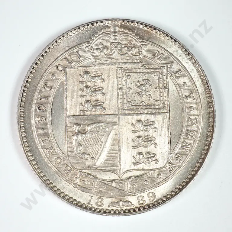 Double Florin - Four Shillings: 1889 Inverted I - Almost Uncirculated