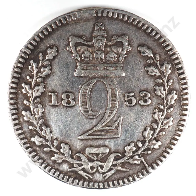 Half Groat & Twopence: 1853 Maundy - Very Fine ( Obverse Damage )