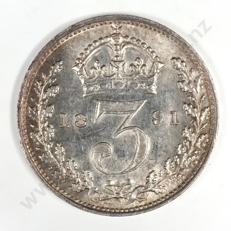 Threepence: 1887, Young Head Victoria - Almost Uncirculated