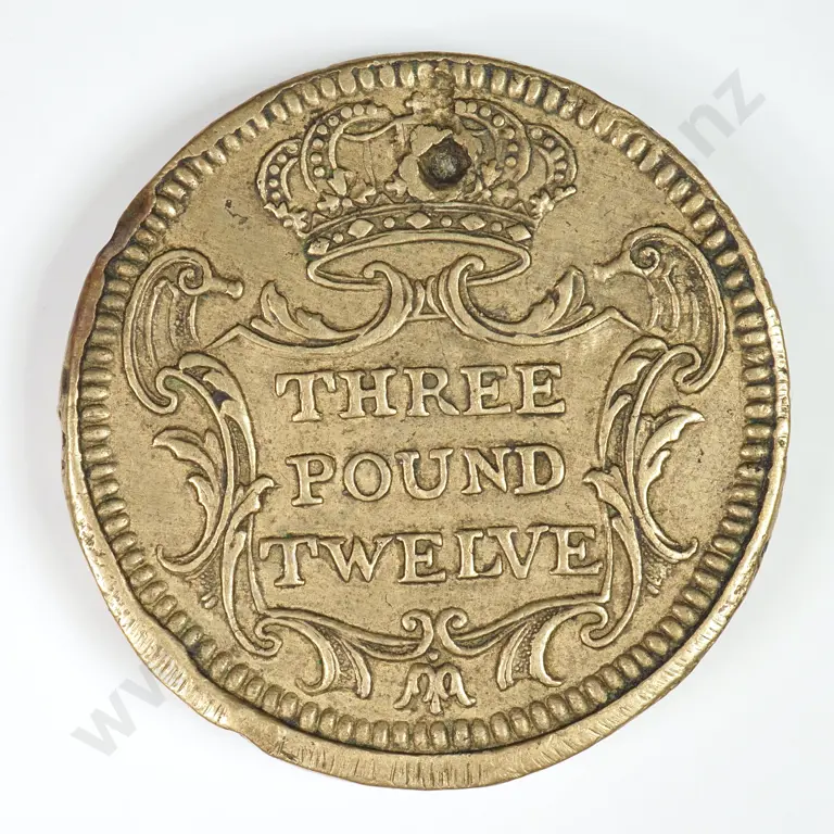 Misc: 1757 Brass Three Pound Twelve Weight - Very Fine